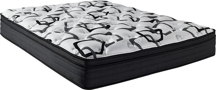 Tissu Méli-mélo, 0,75 po (1,91 cm) de fibre en polyester, 2 couches de 1,5 po (3,81 cm) mousse ondulée, ressorts ensachés Perimax™ zonés lombaires, 0,38 po (0,97 cm) de feutre isolant