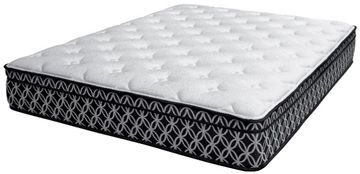 Matelas Euro Top avec 868 ressorts ensachés 3 zones dans un caisson en mousse. Contient une Couche de 1 1/4" en Mousse Alvéolée. Tissu blanc 2486, matelassé avec mousse alvéolée de 1 1/2" et fibre de polyester de 3/4". Épaisseur approximative du matelas: 11 1/2". Garantie: 10 ans non prorata.